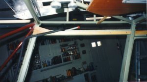 The rear floorboards on 97M were beyond repair, so I built new ones using Birch ply. I used 6 mm birch, and laminated strips of 5 mm birch roughly 3" wide along the perimeter and along the diagonals to maintain the original strength and to duplicate the original 1/2" thickness of the floorboards. Even though the panels are a half inch thick only along the perimeters and diagonals, they are heavier than the originals by about two pounds. Robert Hadow made floorboards using hobby store balsa for the core sandwiched between mahogany ply from Aircraft Spruce. I might make new rear floorboards using this method to save weight. Two piece rear floorboard on NC6197M. Cutout is for rear cabin heat vent. Another view of the rear floorboards