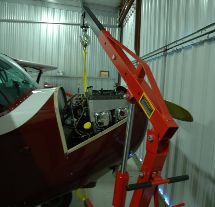 These photos show how I now lift the plane. I find it works best lifting via the motor mount at the firewall, rather than at the engine as I had done previously. The angle is better. Wrap the strap below the lower tube and it can't slide.